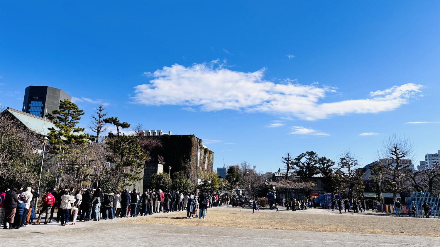 「深川に初詣。一時間くらいの行列の中、見上げた空には龍がいた。これは縁起が良いぞ」