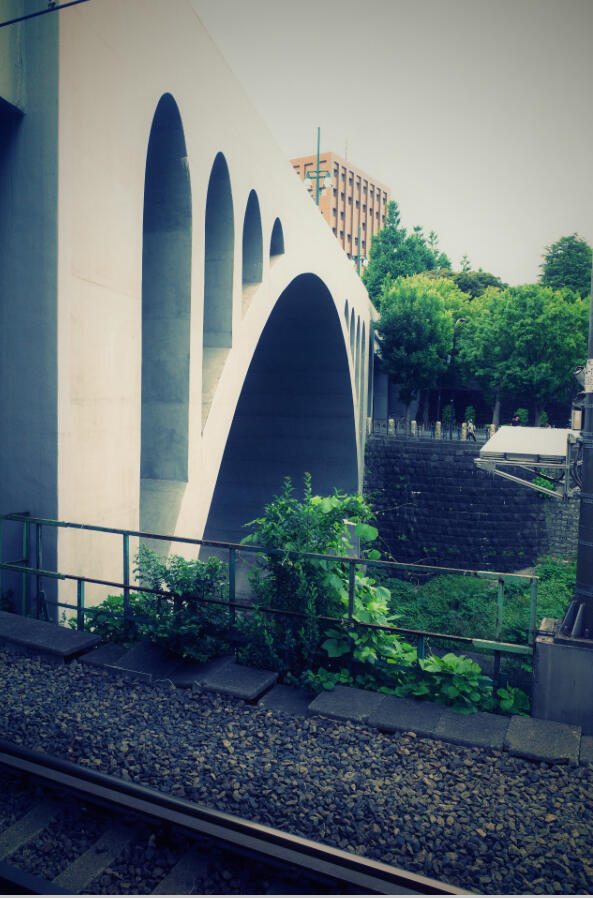 「レコード店帰りのお茶の水駅、ホームからの聖橋を。二十数年前からずっと好きな風景。ある時神田川クルーズで、上から見上げた時もこりゃまた絶景だった」