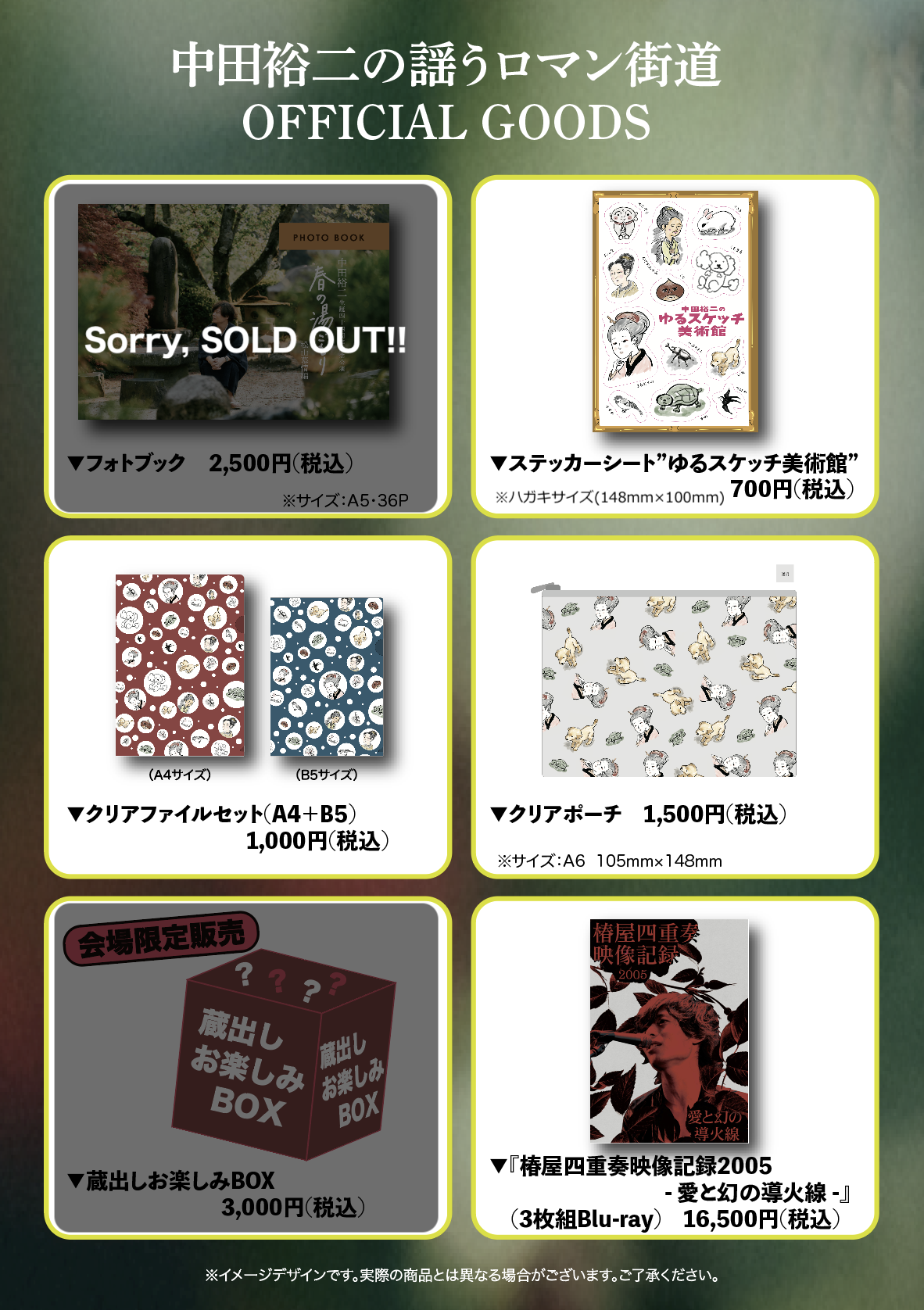 弾き語りツアー”中田裕二の謡うロマン街道”のオフィシャルグッズが