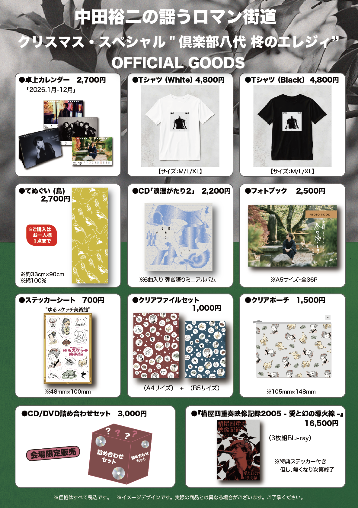その他、会場限定販売の「CD/DVD詰め合わせセット」と今年のロマン街道ツアーグッズも併売いたします。